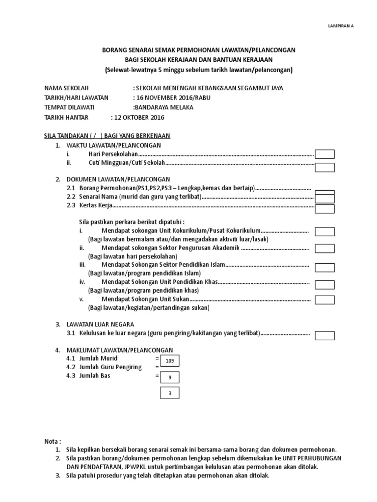 Borang permohonan penggunaan kenderaan pertam. Menanggung sendiri bayaran premium insurans kesihatan yang dikenakan. Download borang kebenaran lawatan (hantar ke jpn ). *borang permohonan perjalanan pegawai awam ke luar negara atas urusan persendirian/rasmi (lampiran 1,lampiran 2) 2. Tujuan memohon pass lawatan berkumpulan surat perjalanan berkumpulan atau dokumen perjalanan kumpulan dipohon oleh rakyat malaysia untuk melakukan perjalanan berkumpulan bagi menggantikan passport antarabangsa.
