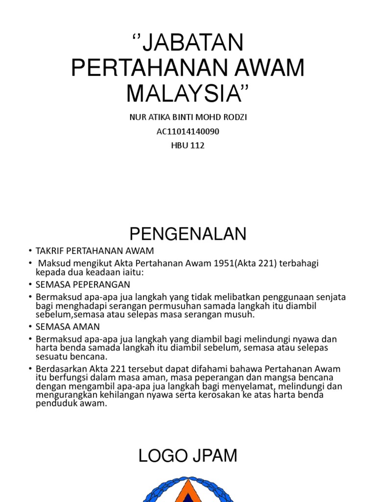 Pengenalan jabatan pertahanan awam malaysia pengenalan angkatan pertahanan awam malaysia penubuhan peperangan dunia telah memberi kesan kepada rakyat negara yang terlibat termasuklah negara kita, malaysia.