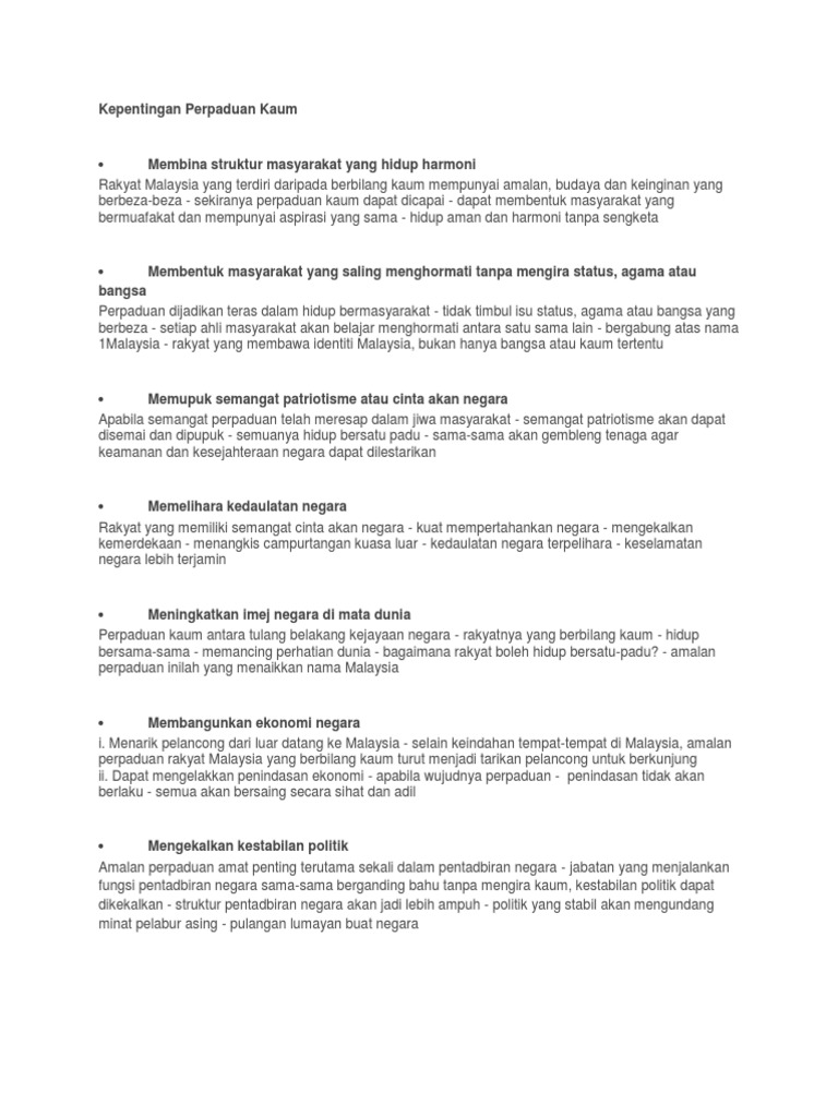 Kejayaan yang dicapai oleh malaysia menerusi perpaduan kaum. We did not find results for: Check spelling or type a new query. Maybe you would like to learn more about one of these?